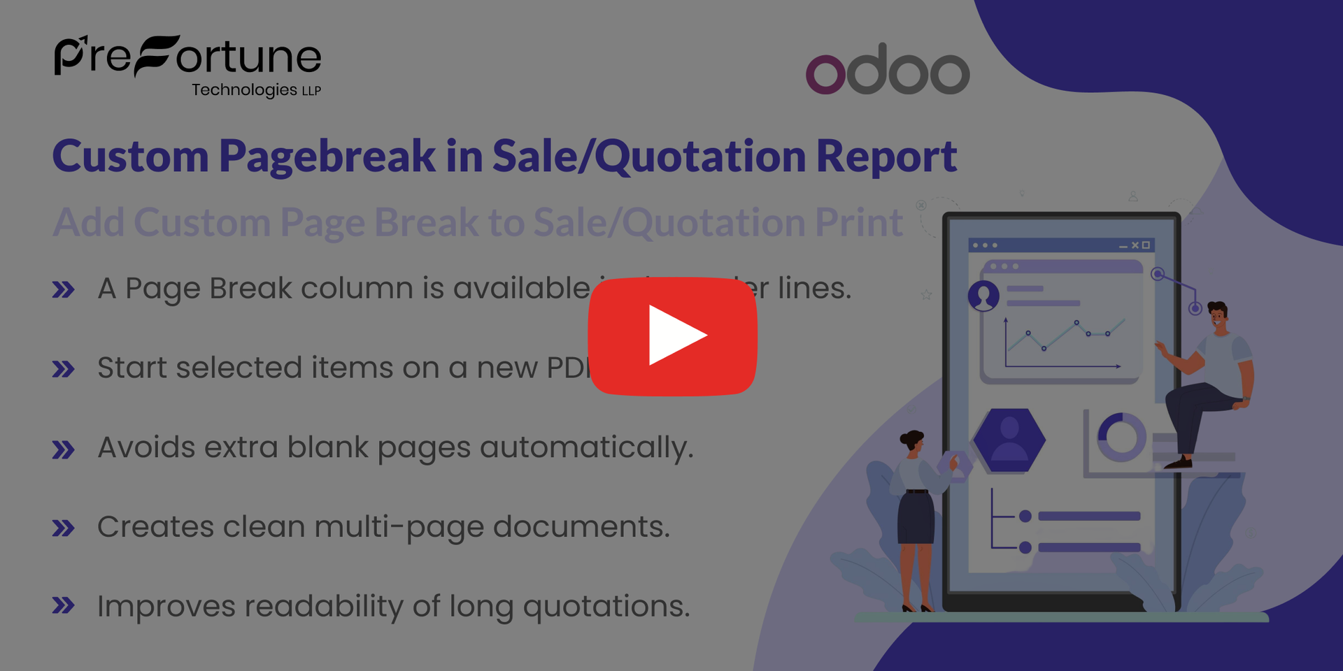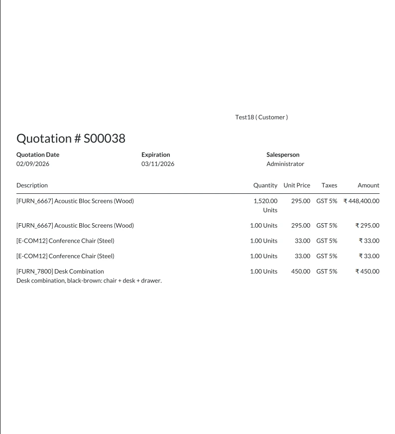 The Odoo Quotation Page Break module allows users to control how quotation and sales order reports are displayed in PDF format. With this Odoo quotation report pagebreak module, you can decide exactly where a new page should begin, making long documents easier to manage.