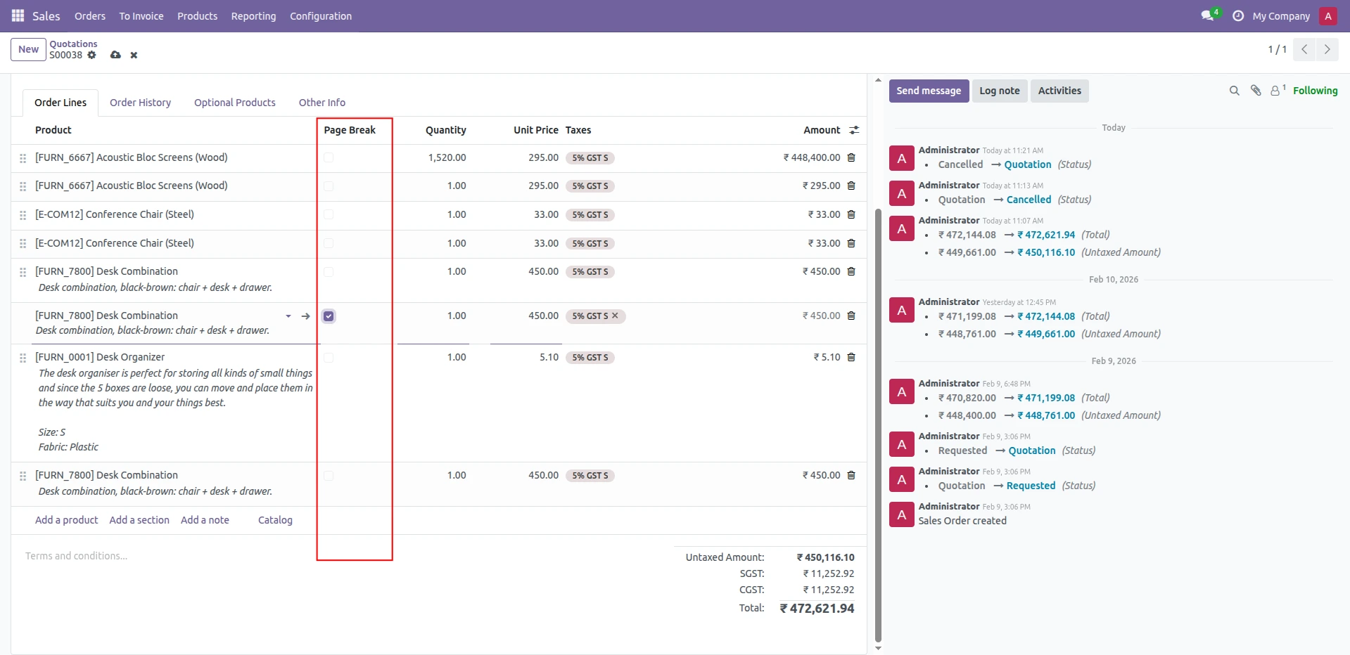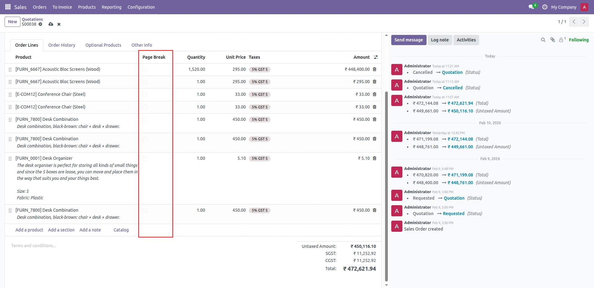 Odoo Quotation Page Break Module