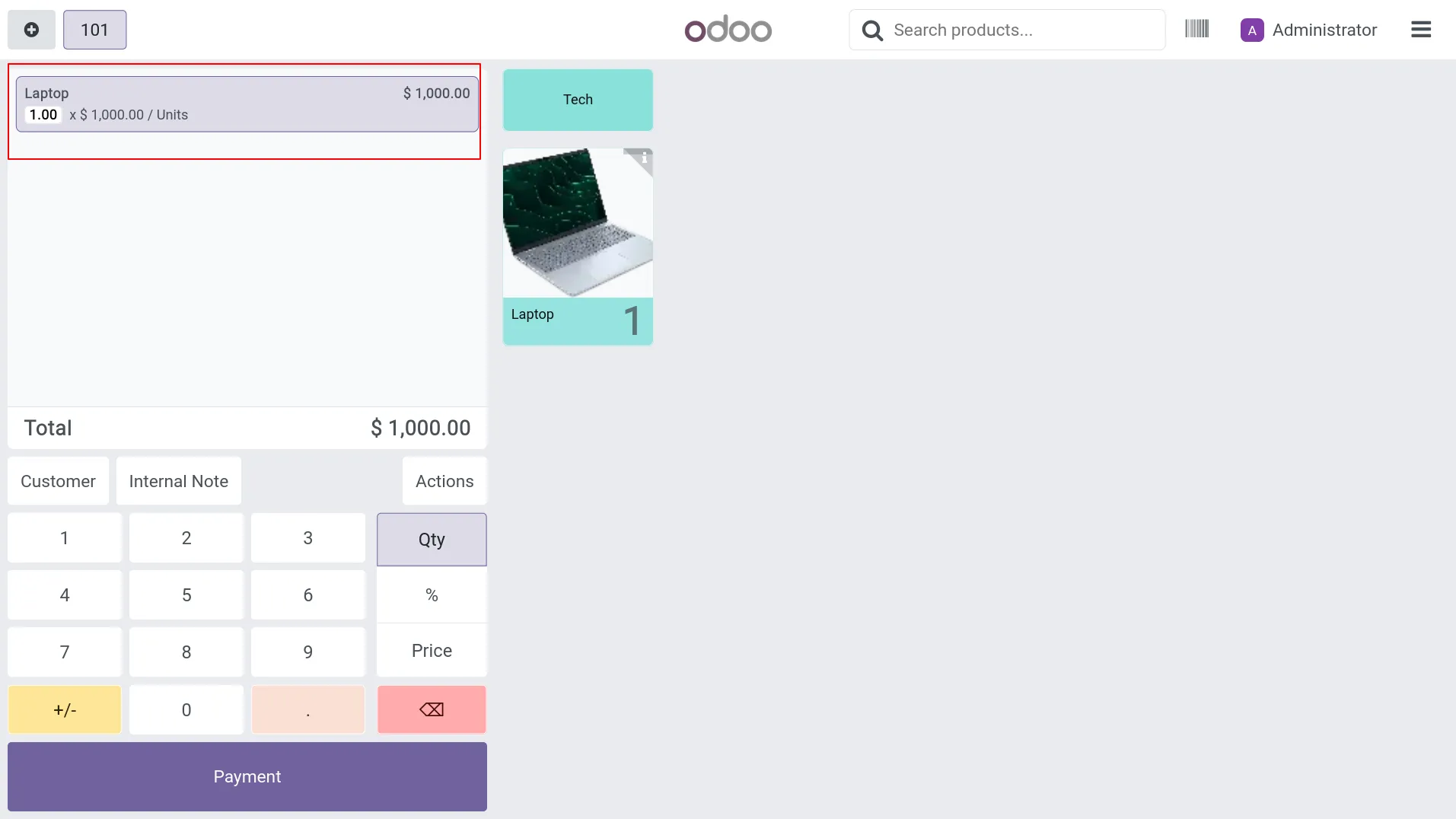 11.In POS screen, Laptop is added to the order line with original price (before applying discount).