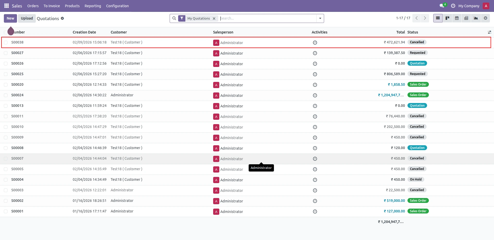 1.Go to Sales → Orders → Quotations.
